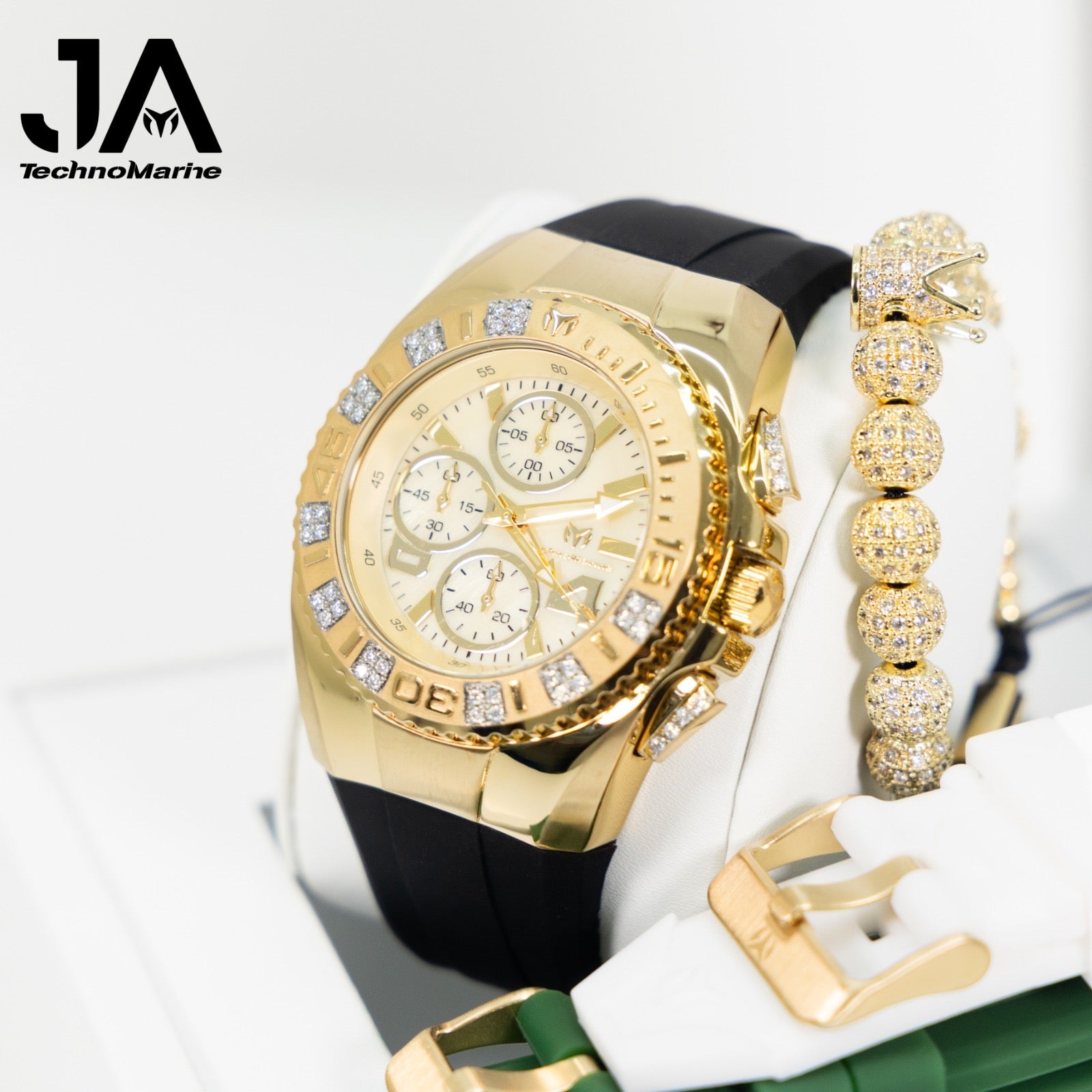 New Modelo 2025 TechnoMarine Cruise Original Men's Watch w/ Mother of Pearl Dial 44 mm, Black, Silver Green with Interchangeable Strap Custom Moisanite